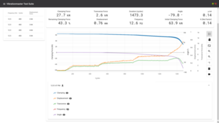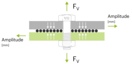When using the new test methodology, the transverse shear force as measured in Newtons [N] is the lead parameter while the displacement amplitude measured in millimetres [mm] is simply a result of the forces acting on the joint. This is how a bolted joint behaves under operating conditions.